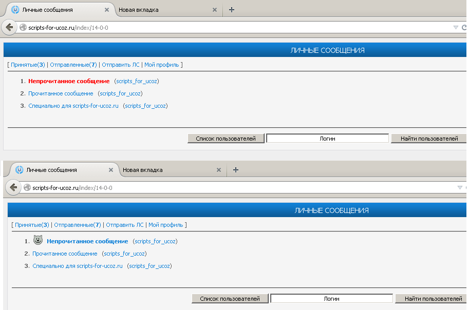 Наверняка большинство сталкивалось с такой проблемой - в личных сообщениях плохо видно какие сообщения прочитаны, а какие нет из-за слишком темного дизайна. Куда лучше, когда рядом с названием непрочитанного сообщения стоит картинка, либо само сообщение выделено другим цветом. Как это сделать - читайте в этой статье.